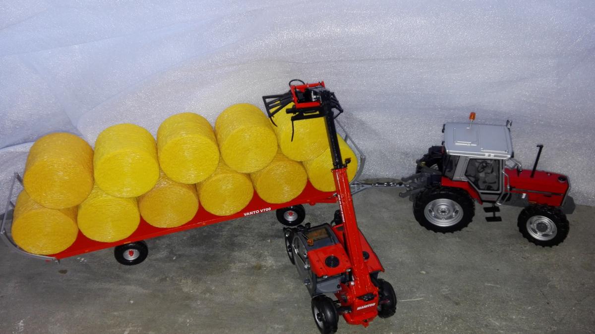 ça va plus vite à 3 pour décharger ... surtout avec la pince qui permet de prendre 2 balles rondes en même temps