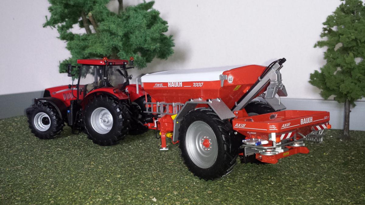 Le Tracteur Case IH Puma CVX 230 de chez UH et Epandeur à engrais Rauch TWS 7000 avec l'épandeur à engrais Axis 30.1 , ensemble de chez UH aussi