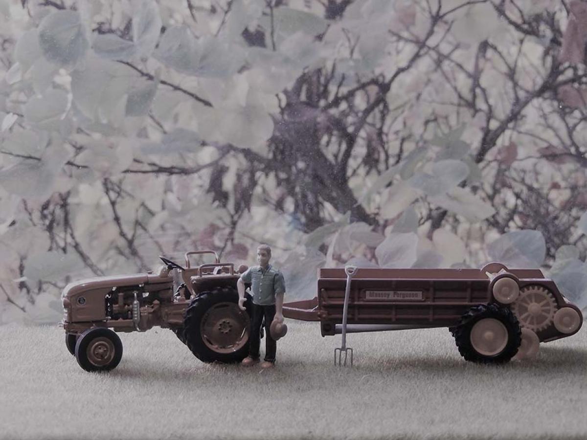 Photo d%u2019époque. Papy son D30 et son nouvel épandeur Massey Ferguson. Un outil qui lui rendra le travail plus facile. Plus question de tout étendre à la main.