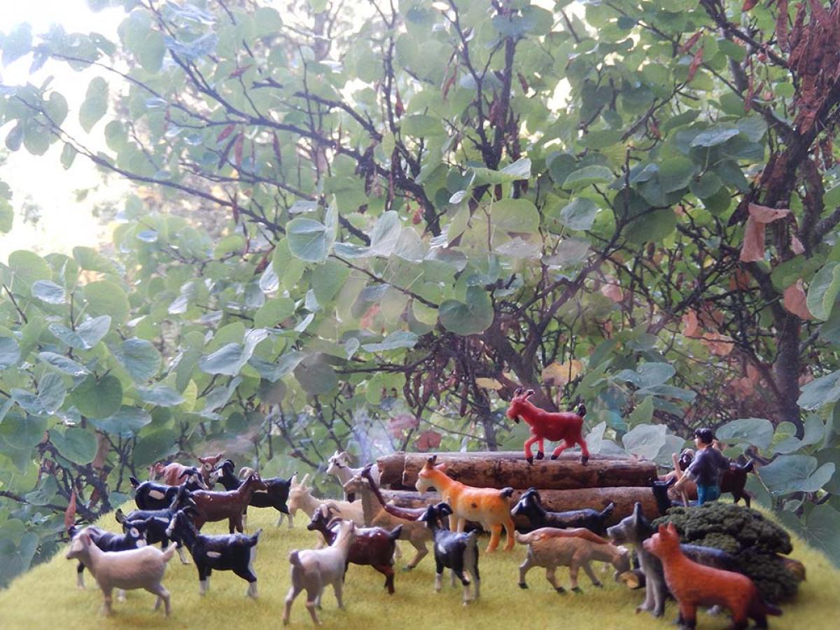 Aujourd'hui les chèvres découvrent la parcelle fraîchement débroussaillée la veille. Baptême du feu pour notre jeune chienne Roxy, qui a fait du bon travail accompagné par notre vieux Caporal !