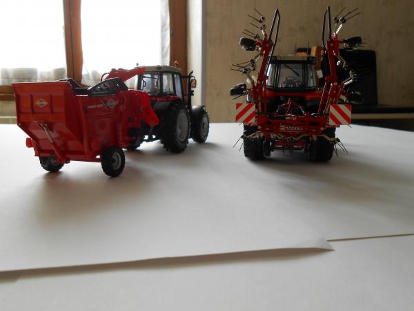 Voici ma pailleuse Kuhn primor 3570m attelé sur le 6475 et ma lame à neige Hydrac attelé à l'avant de mon 7726 ainsi que la faneuse Fella th 6606 dn attelé à l'arrière.