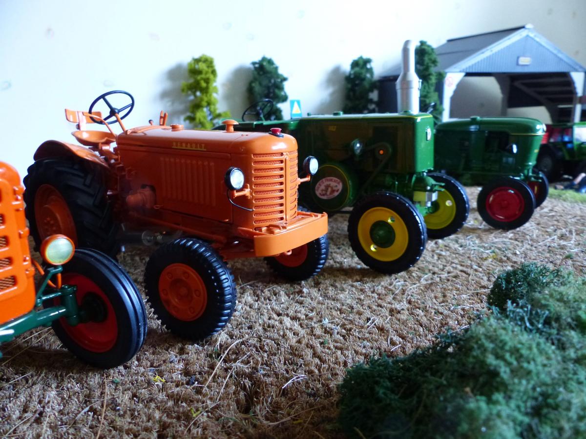 Voici une partie de ma collection composée de tracteurs anciens universal hobbies au 1:16 , de weise toys, réplicagri et de britains des années 70-80.