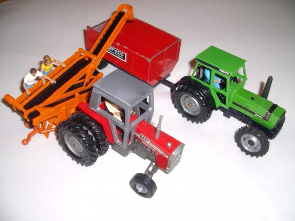Voici une partie de ma collection composée de tracteurs anciens universal hobbies au 1:16 , de weise toys, réplicagri et de britains des années 70-80.